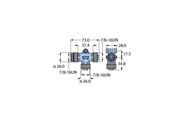 2-Way Splitter, T-Splitter without Cable, Voltage 300 V, Design: 7/8" adapter, T-splitter, 5-pin, For use in CAN (DeviceNet™, CANopen) applications