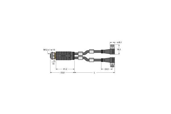 VBRK4.4-2PSG3M-0.6/0.6/TEL 2-Way Splitter, Y-Splitter with Cable, Female M12 × 1 - 2x Male M8 × 1