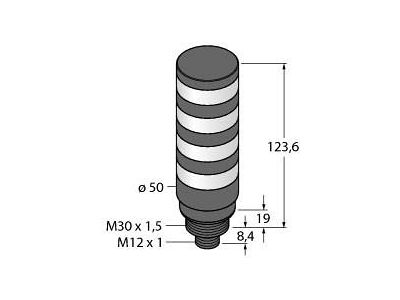 LED Indicator, Tower Light, Operating voltage 21…27 VAC / 12…30 VDC, Plastic housing, gray, Protection class IP67, Protection against electromagnetic and high-frequency interference, Colors: Green (COL 1) / Red (COL 2) / Blue flashing (COL 3), Operating voltage: 12…30 VDC or 24 VAC with 45 mA per LED color, Inputs: PNP/NPN