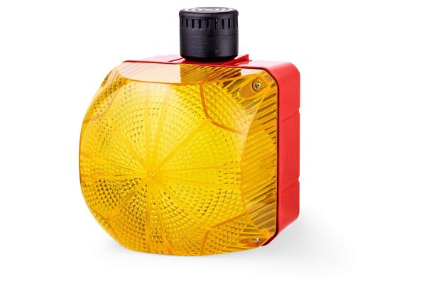 The QCM LED strobe beacon features a built-in buzzer indicator and operates on 110-120 V AC. This yellow, 132 mm cubic-design beacon provides a maximum sound pressure of 100 dB (A) and offers a high degree of protection with IP 66 and IK09 ratings. It includes 4 strobe patterns, as well as steady and flashing modes, with external switching for 3 patterns and up to 60 cd luminous intensity.
