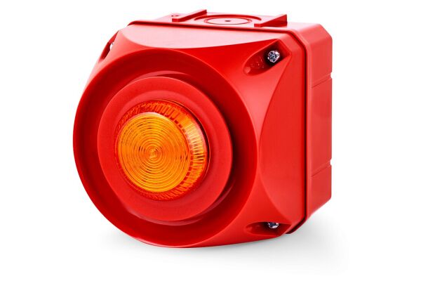 Compact 94 mm cubic multi-tone alarm sounder featuring a built-in LED light indicator that can display steady or flashing light. It offers 32 selectable tones, including 3 externally switchable tones, with a maximum sound pressure of 108 dB (A). Designed for industrial and general applications, it is made from UV-stabilised material and boasts high protection ratings of IP 66 and IK9 impact resistance. An optional metal bracket is available for mounting.