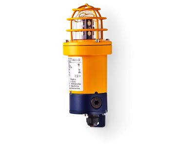 This product is certified for gas and dust hazardous areas (zones 1, 2, 21, 22) and features a flame-proof enclosure "d" and a terminal connection chamber designed for increased safety. It is constructed from copper-free, seawater-resistant aluminum and has a hardened glass lens. With five LED colors, it provides excellent signaling visibility. All models include a protective cage made of stainless steel.