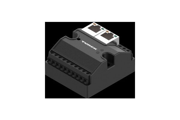 Compact IP20 multiprotocol Ethernet I/O module, Master to Master Data Exchange, NAT Router, Operating voltage 12…30 VDC, Two separate, electrically isolated Ethernet interfaces, Bi-directional data exchange between two networks, Protocol conversion between EtherNet/IP, Modbus TCP and Profinet, Profinet is supported on P2 Ethernet port, 1:1 NAT router, 10 Mbps/100 Mbps supported, 2 RJ45 ports for the Ethernet connection, 8 digital inputs, 24 VDC, PNP, Protection class IP20