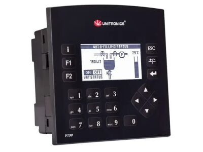 V130-33-RA22 Vision PLC with 2,4'' black/white HMI, 8 Digital, 2 D/A, 2 TC/PT100 Inputs, 8 Relay, 2 Analog Outputs Manufacturer: Unitronics Code: V130-33-RA22 SKU: 4590-V130-33-RA22