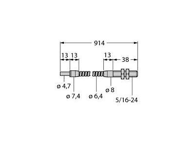 Glass Fiber, Bifurcated Fiber, Operating mode: Diffuse/Retroreflective, Stainless steel jacket, flexible, Operating temperature of fiber-optic jacket: -140…+249 °C, End sleeve for sensor: Brass, angled (90 °), thread 5/16"-24, Operating temperature of fiber-optic tip: -140…+249 °C, Optical fiber, bundle diameter: 3.2 mm, Optical fiber, total length: ± 914 mm
