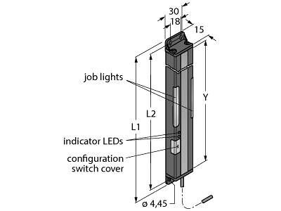 Pick-to-Light, Placement Sensor, Light Grid, Operating voltage 12…30 VDC, Max. range 2000 mm, Cable length 2 m, Scan field Y: 300 mm, Total height 341.4 mm, 13-beam system, beam spacing 25 mm, Emitter, Range max. 2 m, Light / Dark operation, Selectable frequency as protection against crosstalk, Operating voltage 12…30 VDC, Input of operation request light +24 VDC, Protection class IP62