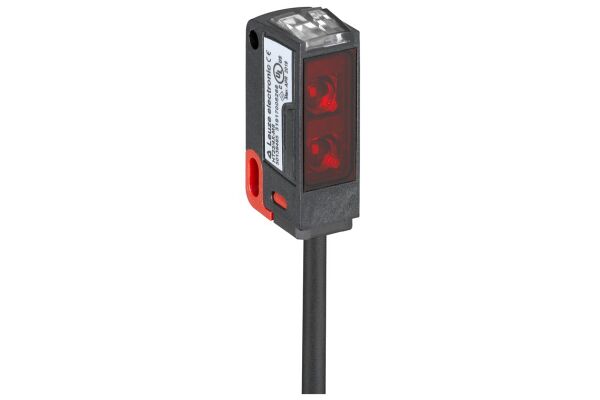 This is a throughbeam photoelectric sensor receiver with a compact cubic design and durable plastic housing. It operates efficiently in a wide temperature range and offers reliable light switching performance.