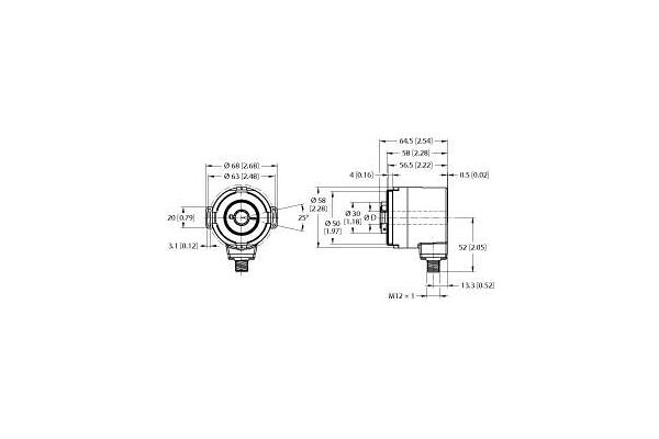 Absolute Rotary Encoder - Multiturn, Industrial Line, Operating voltage 10…30 VDC, Flange with stator coupling, Ø 63 mm, Hollow shaft, Ø 10 mm, Optical measuring principle, Shaft material: stainless steel, Protection class IP67 on housing and shaft side, ‐40…+85 °C, Max. 4000 rpm (continuous operation 2000 rpm), 10…30 VDC, SSI, binary, M12 × 1 male, 8-pin, Singleturn, 13-bit resolution, Multiturn, 12-bit resolution