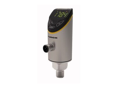 Pressure Transmitter (Rotatable), With Analog Output and PNP/NPN Transistor Switching Output, Output 2 Reprogrammable as Switching Output, Operating voltage 18…30 VDC, Housing is rotatable after plugging the process connection, Reading of adjusted values without tool, Recessed pushbutton and keylock for secure programming, Permanent indication of pressure (bar, psi, kPa, MPa, misc), Peak pressure memory, Pressure range 0…16 bar abs.