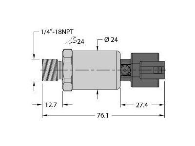 Pressure Transmitter, With Current Output (2-Wire), Operating voltage 7.5…33 VDC, For mobile hydraulic applications, Fully welded metal measuring cell, Sealless, With pressure tip orifice, Compact and robust design, Excellent EMC properties, Excellent accuracy and long-term stability, Kfz-Norm ISO 16750, Pressure range 0…600 bar rel., 7.5…33 VDC, Analog output 4…20 mA, Process connection M14 × 1.5 male thread, Plug-in device, Deutsch DT04-3P