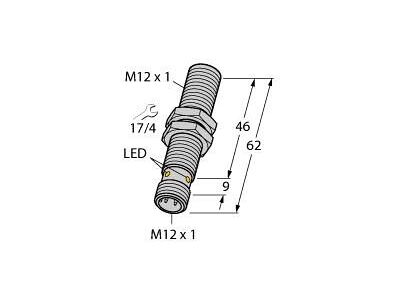 Inductive Sensor, With WeldGuard™ coating, Operating voltage 10…30 VDC, Rated switching distance 4 mm, Flush, Threaded barrel, M12 x 1, Brass, PTFE-coated, Front cap with special coating, very resistant to thermal and mechanical load, Factor 1 for all metals, Protection class IP68, Resistant to magnetic fields, Extended temperature range, High switching frequency, DC 3-wire, 10…30 VDC, NO contact, PNP output, M12 x 1 male connector
