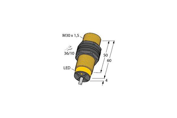 Inductive Sensor, With Increased Temperature Range, Operating voltage 20…250 VAC / 10…300 VDC, Rated switching distance 10 mm, Flush, Cable length 2 m, Threaded barrel, M30 x 1.5, Plastic, PA12‐GF30, Temperatures up to +100 °C, AC 2-wire, 20…250 VAC, DC 2-wire, 10…300 VDC, NO contact, Cable connection