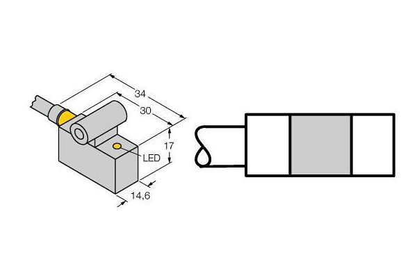 Magnetic Field Sensor, For Pneumatic Cylinders, Operating voltage 10…30 VDC, Cable length 2 m, Rectangular, height 17 mm, Metal, GD-Zn, Magnetic-inductive sensor, DC 3‐wire, 10…30 VDC, NO contact, PNP output, Cable connection